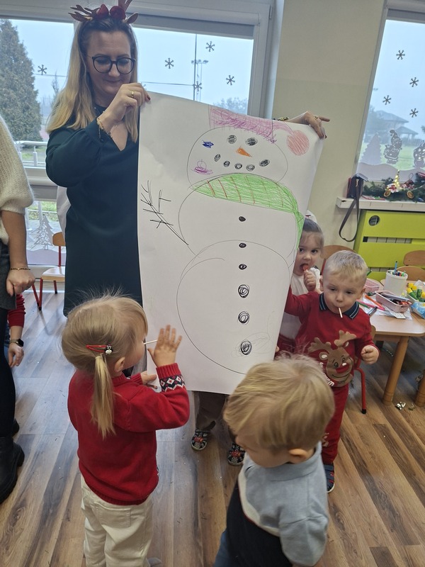 Po części plastycznej odbyły się wesołe konkursy rodzinne, które dostarczyły wszystkim wielu uśmiechów i pozytywnych emocji. Na zakończenie spotkania wspólnie śpiewaliśmy kolędy, tworząc ciepłą, świąteczną atmosferę.