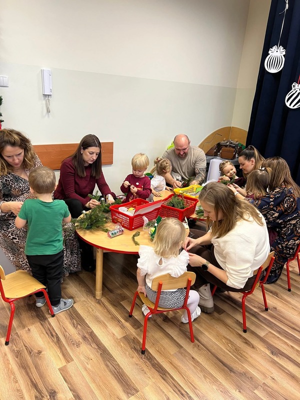 Tego dnia rodzice wraz z dziećmi z ogromnym zaangażowaniem wykonywali piękne stroiki, ozdoby świąteczne oraz kartki bożonarodzeniowe. Kreatywność i pomysłowość uczestników sprawiły, że powstały prawdziwe małe dzieła sztuki.